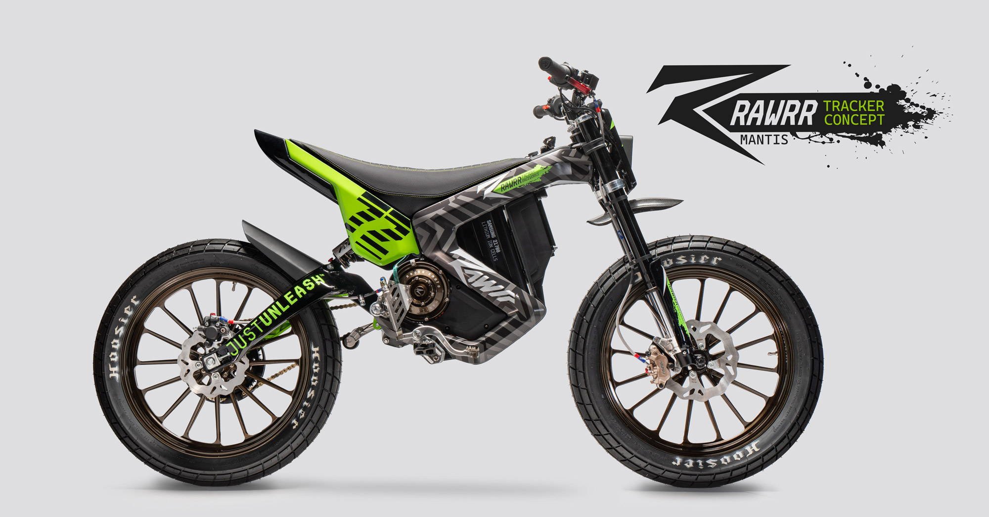 Flat track racing and electric motorcycles weren’t concepts people often connected with, which is exactly what made Rawrr’s proposal so intriguing. Brand designer Leo Battersby and CEO Andy Leisner approached us with the idea of building a custom concept bike to debut the new 72v Mantis at EICMA 2023. The challenge was timing—discussions began in late August, leaving less than two months to deliver. We jumped in, partnering with Leo, who brought in the legendary Bob Haro, the “Godfather of Freestyle BMX,” to help shape the vision board. After countless late nights and renderings, the direction was clear: transform the Mantis chassis into a one-of-a-kind street tracker, the Fat Tracker.
