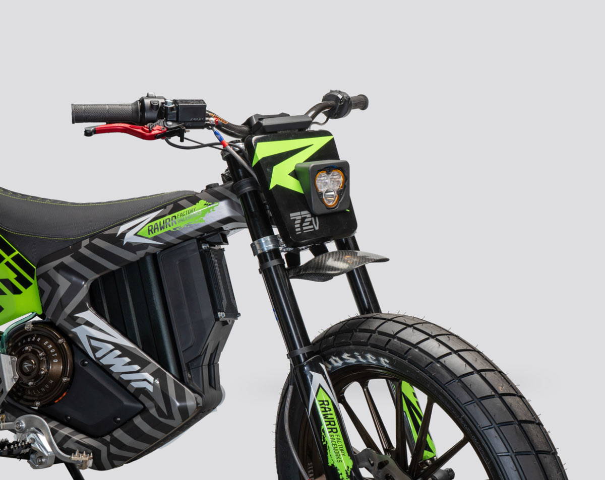 While Rawrr’s rebrand was underway, Bob and Leo developed new color combos and livery patterns with the updated logo. Every option looked great, but only one could be chosen. The real challenge was merging the two-face concept into four distinct color schemes across each bike, while the swingarm and frame shapes complicated logo placement. Explaining this to both the painter and wrap shop wasn’t easy, but Impressive Wrap—despite being buried in SEMA projects—understood the vision and delivered flawlessly.