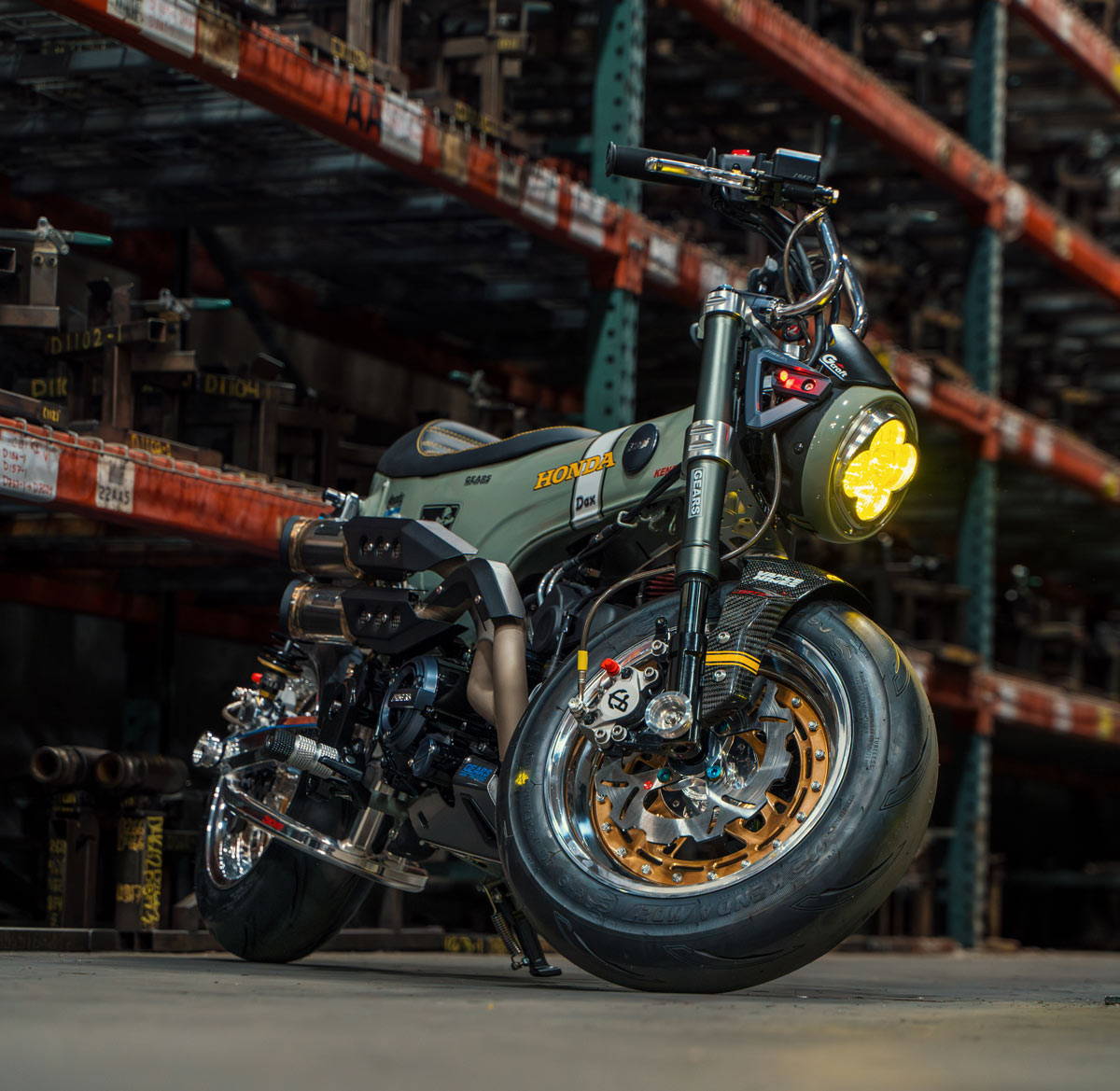 We spent weeks brainstorming, sketching, and filling our design board with ideas. The initial plan was to build two Dax 125s, but we put the second on hold so we could focus on completing the first in time for the launch with Honda. Once our concepts were finalized, the green light came from Honda, and the project officially kicked off. From there, we reached out to our friends at Vance & Hines, SMR Factory, Gears Racing, G-Craft, Chimera Engineering, and Kenda Tires to share our vision and bring them on board for this exciting collaboration.